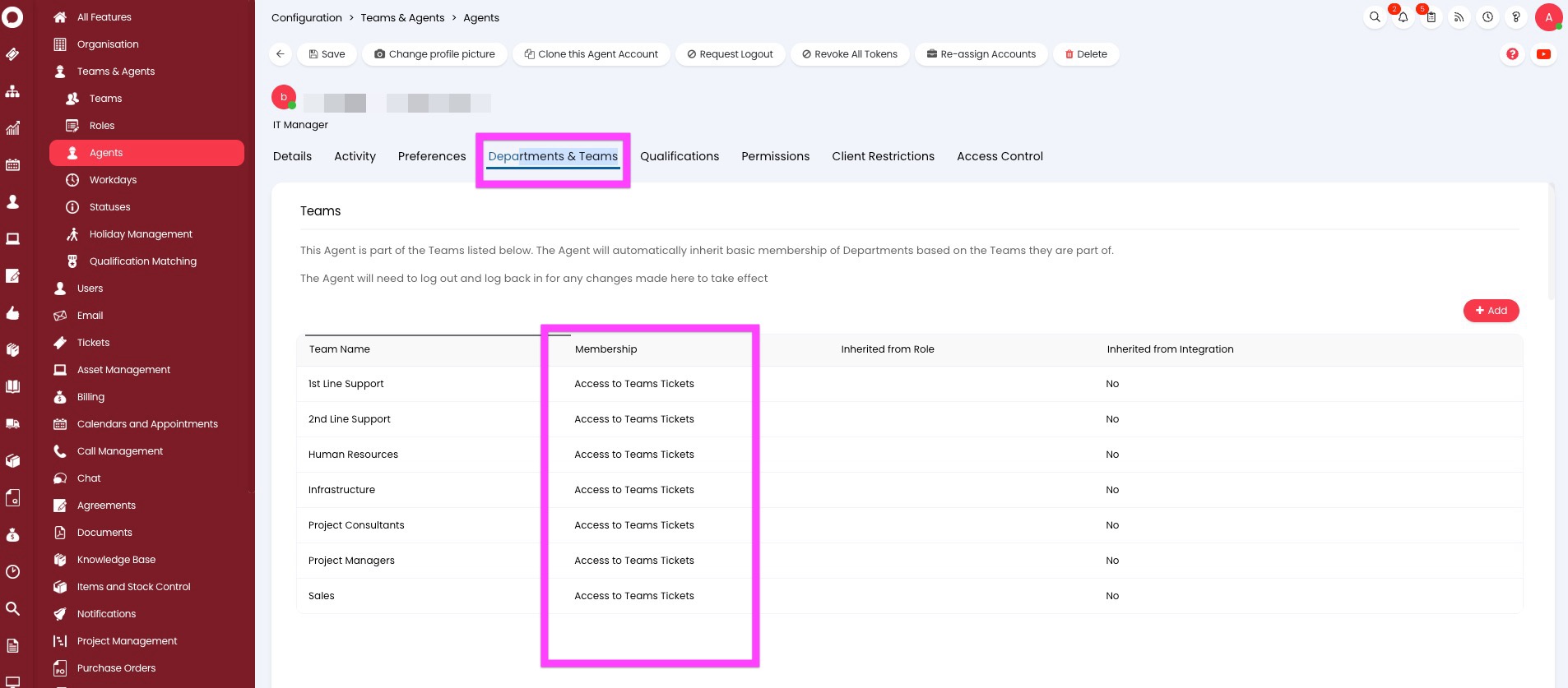 9. Agent Department and Teams: Also ensure that the agent has access to all Teams in Halo.