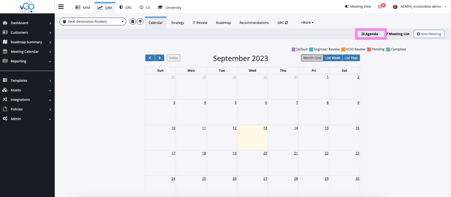 3. Via the Meeting View for QBR or GRC in the Agenda tab.