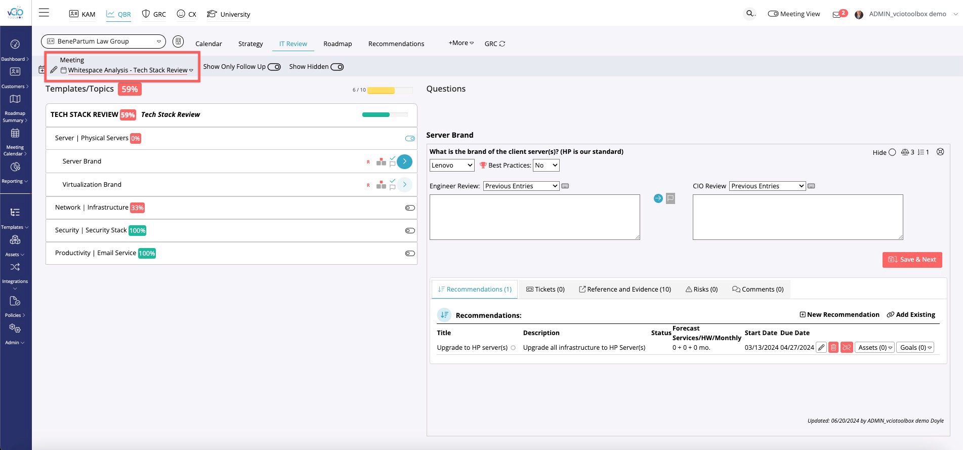 2. Set your Meeting to Tech Stack Review and conduct your assessment.