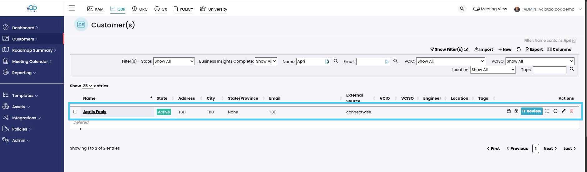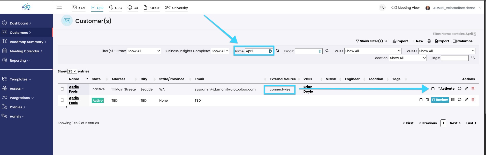 3. Once you identify the customer, activate the PSA-connected record. You will now have two active records for that same customer.