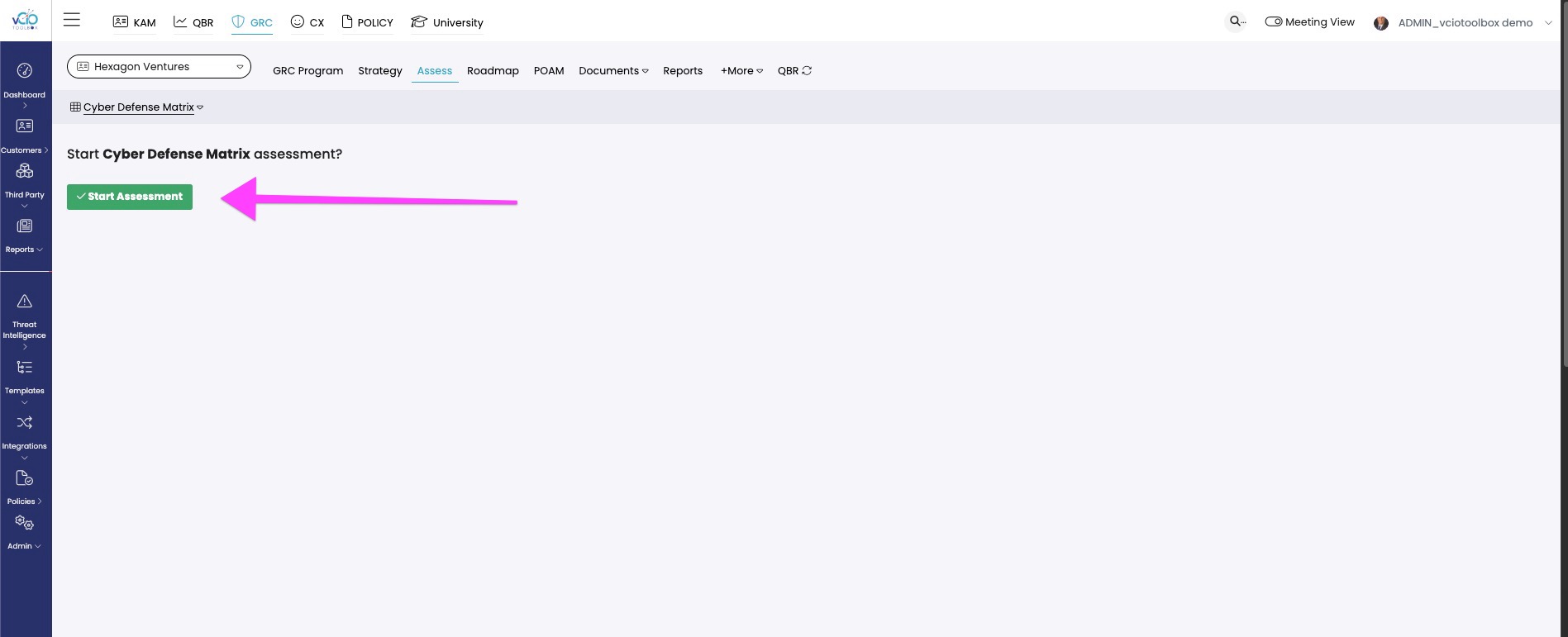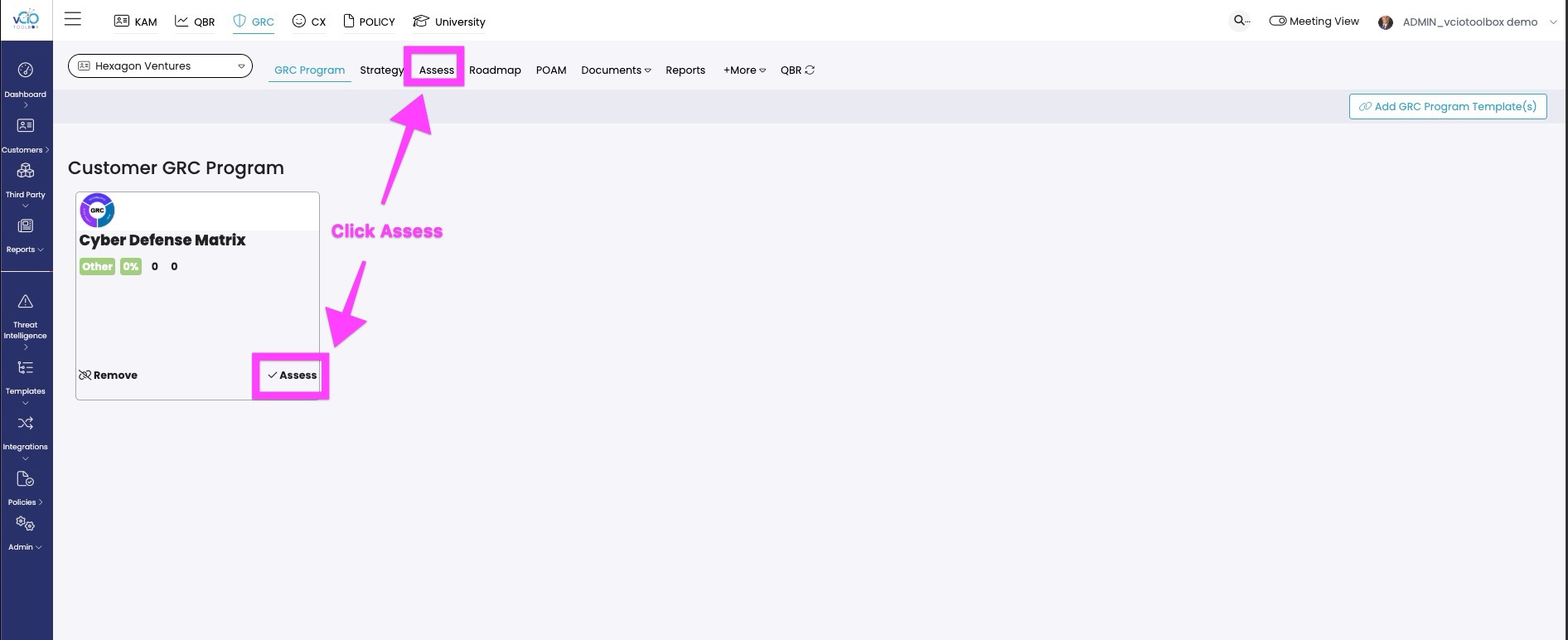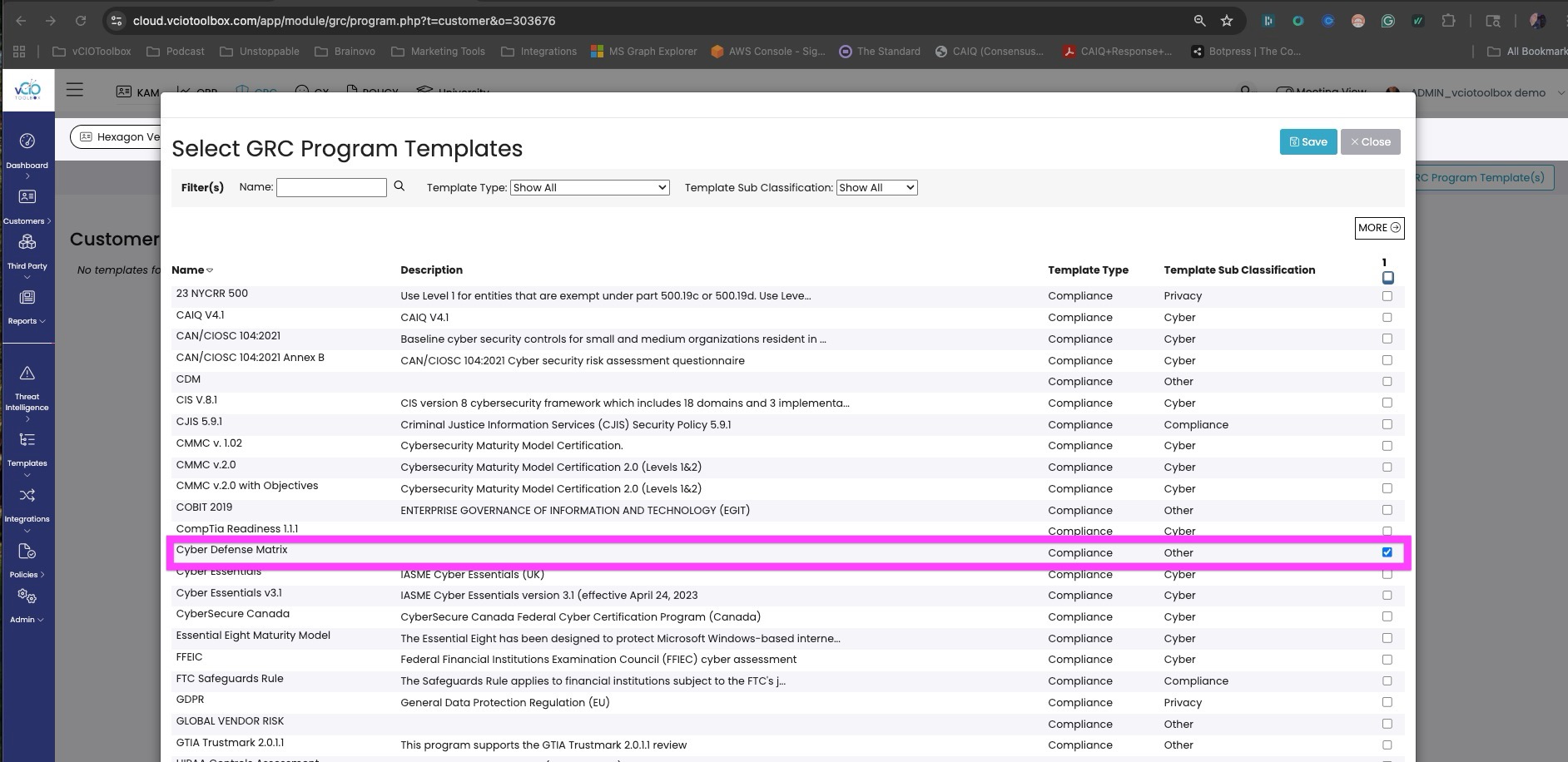 1. Choose the Cyber Defense Matrix from the GRC Programs available.