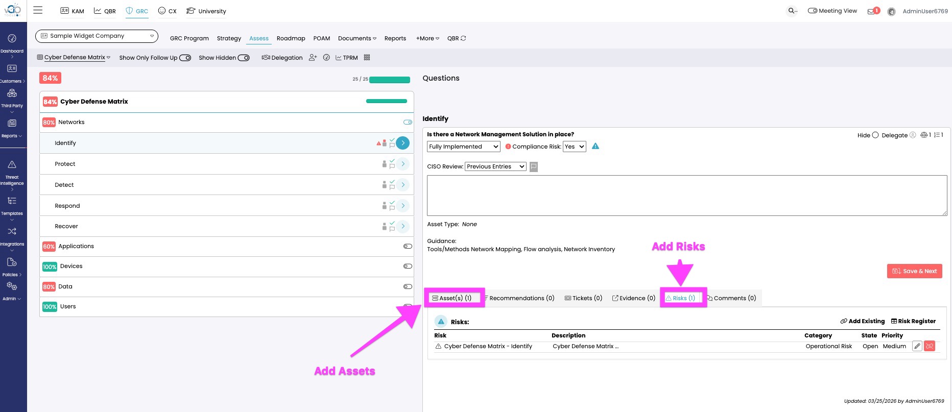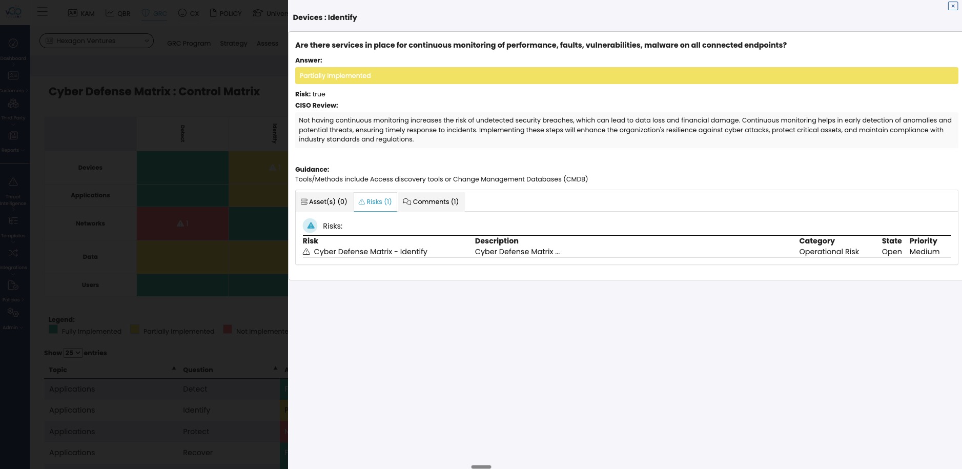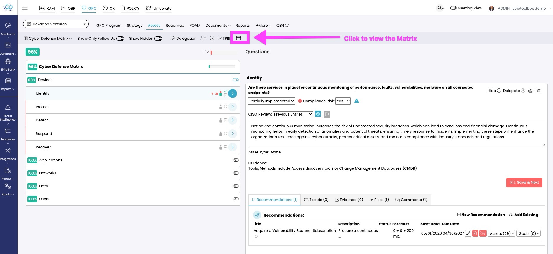 1. Choose the Cyber Defense Matrix from the GRC Programs available.