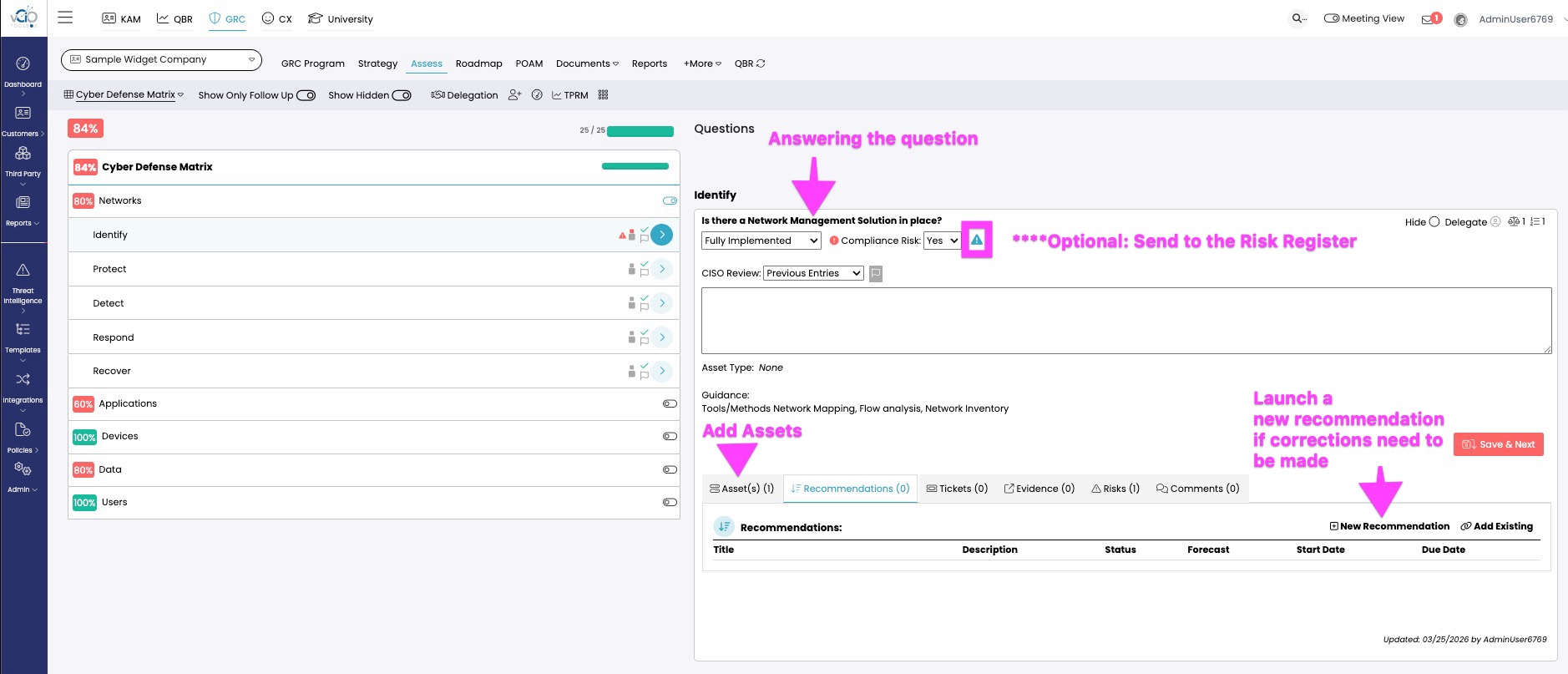 4. Begin your assessment. If there are missing components of the control being measured, create a new recommendation.